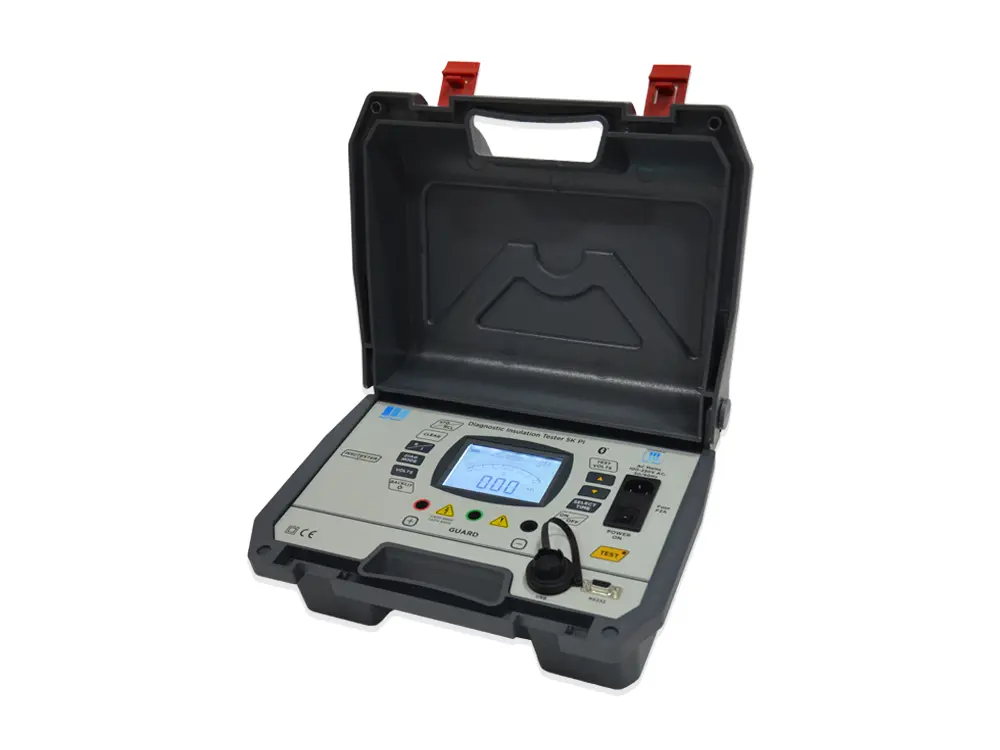 5 kV (DC) izolasyon tanılama cihazı; IR, PI, DAR, DD ve SV test fonksiyonları ile donatılmıştır. Dâhili veri belleği, güçlü yapı ve kolay kullanım özellikleri sayesinde hem saha ölçümleri hem de bakım süreçleri için uygundur.